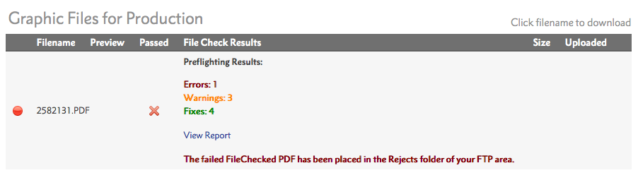 If you have any unexpected results from the Flyerlink® FileCheck when checking your final PDF, please use Get File Help to ask for assistance (during business hours, Mon - Fri).