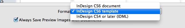 Save file as either an InDesign® Template file, .indt or InDesign® IDML file, .idml
