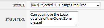 The job status will be changed to 067, and any text entered by the customer will appear under the job status in Flyerlink.